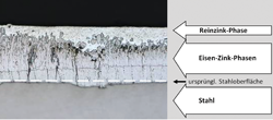 Phasen einer Zinkschicht aus der Feuerverzinkung gemäß DIN EN ISO 1461 / Bildquelle: Fontaine Technologie GmbH