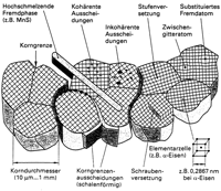 Metalle und Legierungen (polykristalline Werkstoffe) weisen häufig eine Vielzahl von erwünschten aber auch nicht erwünschten Gitterbaufehlern wie Leerstellen, Zwischengitteraromen, Versetzungen, Korngrenzen, Zwillingsbildungen, Poren und Rissen auf. Durch die Herstellungsprozesse während der Schmelz- und Gießvorgänge können auch größere Hohlräume (Lunker) gebildet werden. Bei der Erstarrung einer Metallschmelze tritt in der Regel eine Volumenabnahme (Schwindung) auf, die zur Folge hat, dass in den zuletzt erstarrten Bereichen des Gussstückes ein mehr oder minder großer Hohlraum entsteht. Lunker haben im Allgemeinen eine ausgeprägte, werkstoffabhängige Trichterform. Des Weiteren entstehen Materialfehler wie Seigerungen (Konzentrationsanhäufungen von Legierungselementen) sowie gewollte oder unerwünschte Einschlüsse beziehungsweise Ausscheidungen.