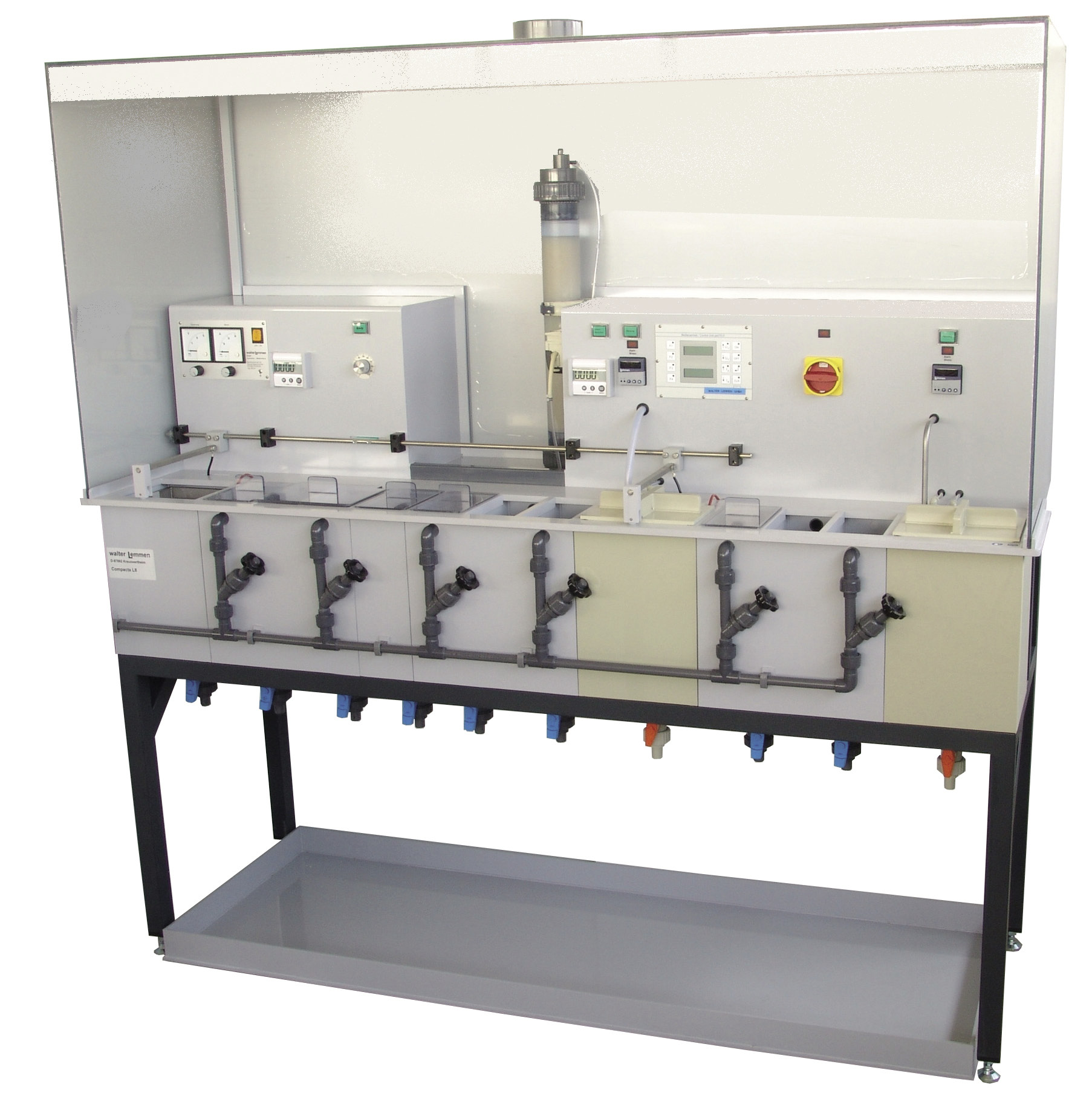 - Nach Austausch der Kathodensysteme lassen sich mit dem selben Gerät eine Vielzahl von Metallen aus den unterschiedlichsten Elektrolytsystemen ausarbeiten.