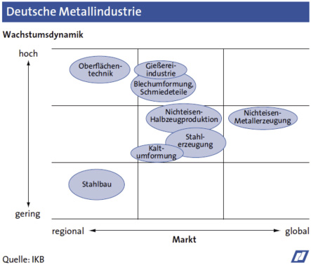 Abb. 2: Wachstumsdynamik in Bereichen der deutschen Metallindustrie (Quelle: IKB)