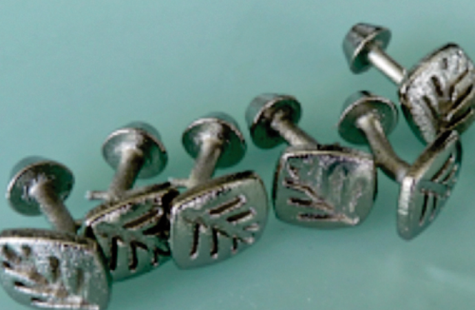 Galvanische Nickelschichten zeichnen sich durch eine hohe Härte, gute Verschleißbeständigkeit, einen ansprechenden Glanz und eine hervorragende Korrosionsbeständigkeit aus. Diese Schichten empfehlen sich immer dann, wenn komplexe Geometrien mit einem schönen metallischen Glanz gefordert sind. Als Beispiel hierfür dient die Fertigung von individuellen Manschettenknöpfen. Diese Manschettenknöpfe wurden durch ein Rapid-Prototyping-Verfahren hergestellt und im Anschluss durch ein galvanisches Verfahren glanzvernickelt (Abb. 3 und 4).