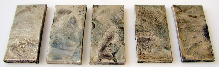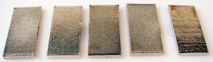 Dazu wurden Zugversuchsproben aus DSM Somos Nano Tool™ Material von Cirp hergestellt. Die Ausgangsproben hatten eine Dicke von 1,45 mm (Typ 1), 1,47 mm (Typ 2) und 1,22 mm (Typ 3). Diese Zugproben wurden durch die RP-Plating mit einer metallischen Hülle basierend auf Nickel, auf ein Endmaß von 1,52 mm verstärkt.