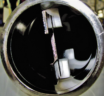 Der Test beruht auf einem Vergleich der Reinigungsfähigkeit zwischen einem Referenzrohr (gerade Rohrleitung mit bekannter, leicht zu reinigender Innenoberfläche, Ra = 0,5 – 0,7 µm) und den beschichteten lasergesinterten Proben.