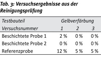 Ein weiteres wichtiges Kriterium ist die Beständigkeit der Schichten gegenüber Temperaturwechsel und aggressiven chemischen Medien, die beispielsweise zur Reinigung der beschichteten Bauteile zum Einsatz kommen. In einem vorgelagerten Test wird geprüft, ob die Schichten diesen Beanspruchungen standhalten. Dabei darf sich die Schicht an keiner Stelle von den Proben ablösen oder eine Blasbildung der Schichten entstehen. Dieser Test wird auch als Temperaturwechseltest oder auch beschleunigte Alterung bezeichnet.