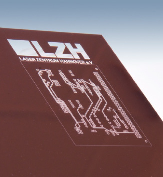 Das Laser Zentrum Hannover e. V. (LZH) entwickelt mit Projektpartnern die Fertigungsprozesse für Mehrlagenleiterplatten auf Basis von Dünnglas mit 145 µm Dicke. Der Trend zu Miniaturisierung und erhöhter Prozessgeschwindigkeit in der PCB-Industrie stellt hier eine besondere Herausforderung an den Fertigungsprozess dar. Den Mitarbeitern der Gruppe Glas aus der Abteilung Produktions- und Systemtechnik kommt im Projekt GlasPCB die Aufgabe zu, zwei verschiedene Laserprozesse für die Bearbeitung der speziellen Materialien zu entwickeln. Sie setzen den Laser einerseits zum Strukturieren der Metallschichten ein. Entsprechend einem vorgegebenen Platinenlayout werden Leiterbahnen erzeugt, indem die überschüssige Metallschicht per Laserabtrag vom Dünnglas entfernt wird. Die Vorteile der Laserbearbeitung zeigen sich hier besonders in einer Ablation mit extrem feinen Strukturauflösungen ohne Schädigung des empfindlichen Materials. Anderseits dient der Laser zur Erzeugung der Bohrungen (Vias), die es ermöglichen, Verbindungen zwischen den verschiedenen Leiterplattenebenen herzustellen oder konventionelle Bauteile zu verknüpfen. Dazu werden am LZH geeignete Laserparameter ermittelt, die das Material ohne thermische Schädigung vollständig durchbohren sowie eine hohe Qualität der Bohrungen bei kleiner Prozesszeit erzielen. Für ein optimales Ergebnis werden mehrere parallele Schnittpfade durch den Glasverbund geführt. Die von der Materialdicke und dem Platinenlayout abhängige Prozesszeit beträgt derzeit für die Bohrung eines Microvias von 0,2 mm Durchmesser durch 170 µm dickes Material etwa 2 s – Tendenz sinkend.