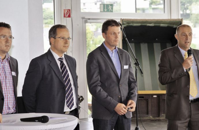 Text zum Titelbild: Thomas Imenkämper (L&R Kältetechnik), Peter Fischer (Balver Zinn), Lars Fleischer (Driesch Anlagentechnik) und Michael Bertzen (Wocklum Chemie) auf der Tagung in Langscheid (v.l.n.r.)