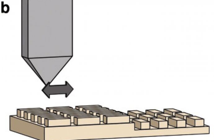 Text zum Titelbild: Vereinfachtes Schema: Der besondere Aufbau der Siliziumoberfläche erlaubt den direkten Vergleich der Reibungskräfte in zwei verschiedene Richtungen / Bild: Universität Regensburg