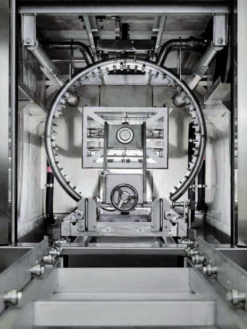 Das Frontlader-Konzept überzeugte auch ein namhaftes deutsches Unternehmen aus der Automobilbranche, das es zur Reinigung von Lkw-Motorblöcken einsetzt. Abgestimmt auf die Abmessungen der Aggregate, passte Rosink die nutzbaren Innenmaße der Anlage bei dieser Ausführung mit 1320 mm x 1320 mm x 1200 mm (L x B x H) an. Anlagen für noch größere oder auch für kleinere Bauteile können ebenfalls realisiert werden. Basis des Reinigungsprozesses ist ein Mehrbadsystem (Waschen/Spülen), im Standard mit einem Drehteller. Innerhalb der Waschkammer können je nach Ausstattung und Bedarf unterschiedliche Programme zur Reinigung der Motorblöcke ablaufen, beispielsweise Waschen, Spülen und Trocknen.
