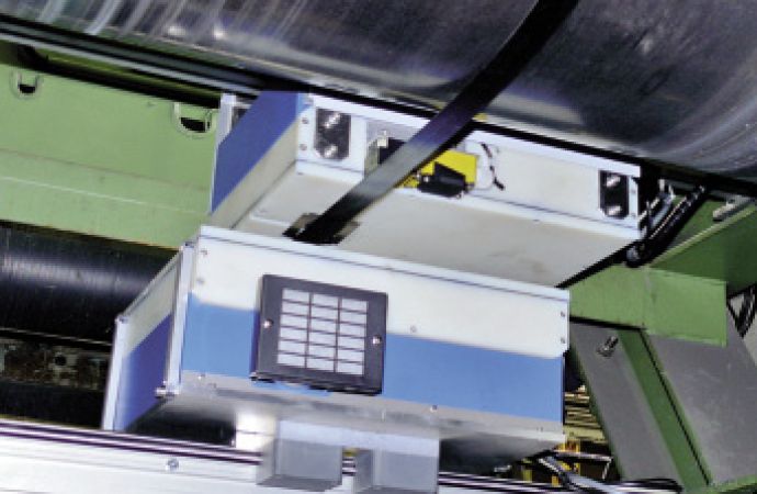 Text zum Titelbild: Anlage zur Schichtdickenmessung bei Bandober- und -unterseite