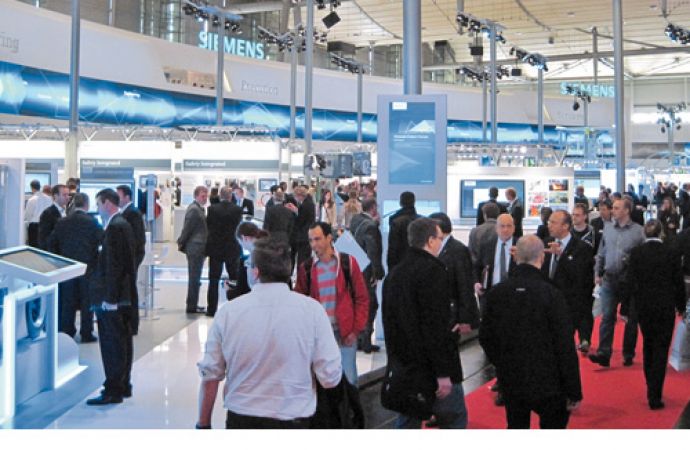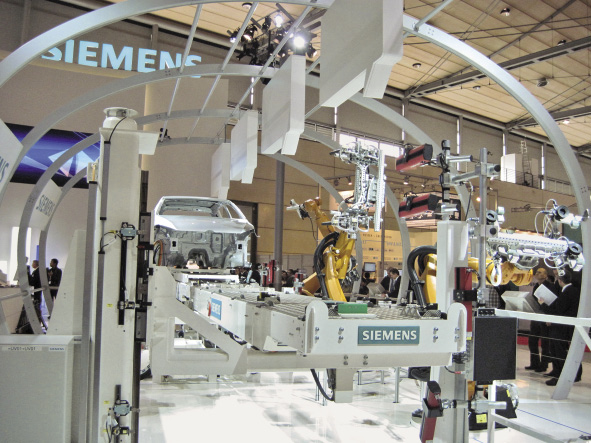 Für Siemens ist Industrie 4.0 ein großes und wichtiges Thema, wie der entsprechende Stand fast über eine ganze Hallenbreite zeigte