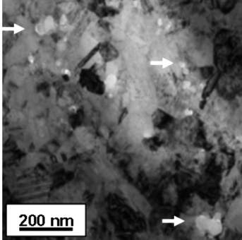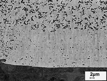 Transmissionselektronenmikroskopische Hellfeldabbildungen belegen eine gute Anbindung der inkorporierten Partikel an die Matrix (Abb. 3a, b). Oft sind Agglomerate einiger Teilchen zu erkennen, die bereits während der Herstellung in der Gasphase zusammengewachsen sind (Abb. 3a, c).