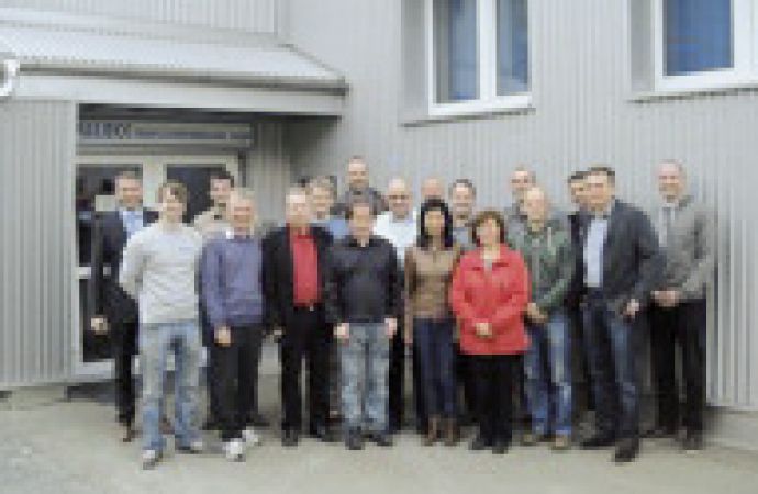 Geschäftsführer Dieter Höland begrüßte die Fachkollegen und informierte sie über die betriebliche Entwicklung des Unternehmens: die Gründung im Jahr 1991, den Abriss maroder Gebäudeteile, den Neuaufbau bei laufender Produktion, die erste Zertifizierung 1999 und die Erweiterung der Firma 2009 mit dem Anbau einer neuen 2000 Quadratmeter großen Produktionshalle. Gegenwärtig gehören etwa 50 Mitarbeiter dem Unternehmen an. Die Produktionspalette umfasst meist kleine Teile, die gleitgeschliffen oder mit Kupfer, Nickel, Chrom oder Gold in verschiedenen Varianten je nach Kundenwunsch galvanisch beschichtet werden. In der anspruchsvollen Gleitschleiftechnik, als zweites Standbein des Unternehmens, liegen bereits langjährige Erfahrungen und das erforderliche Know-how vor.