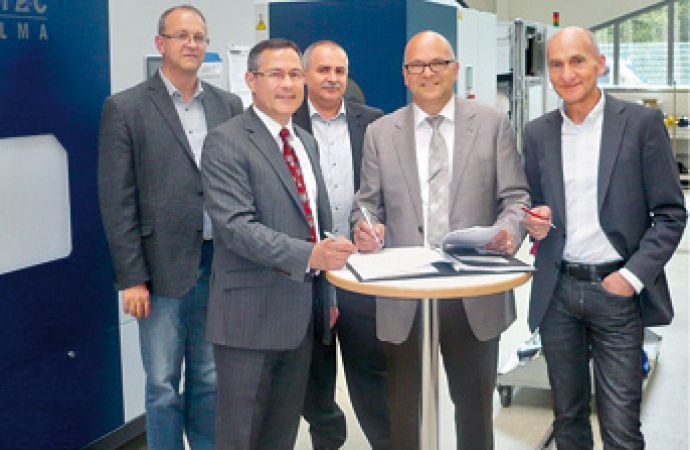 Text zum Titelbild: Die Kooperation zwischen MAFAC und KLB wird vertraglich besiegelt: Willhelm Irion, kaufmännischer Leiter MAFAC; Michael Kuri, Geschäftsführer KLB; Heimo Waizmann, Projektbetreuer/Vertrieb KLB; Rainer Schwarz, Geschäftsführer MAFAC; Joachim Schwarz, Geschäftsführer MAFAC (v. l. n. r.)