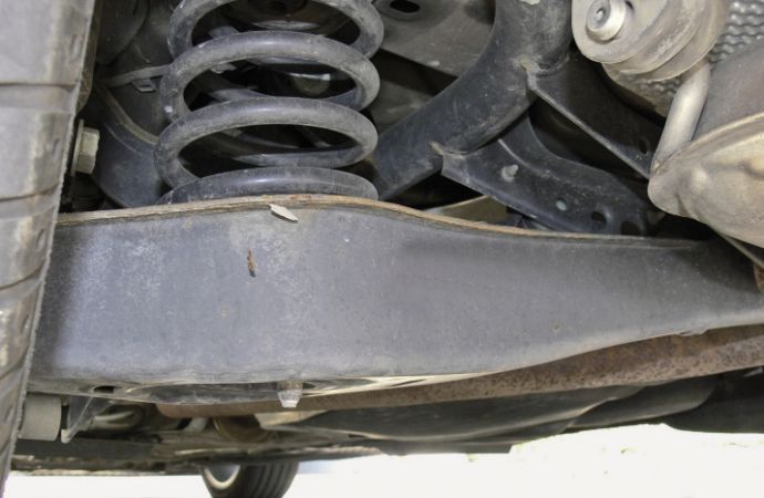 Abb. 2: Flächige Korrosion an einem Hinterachsteil an einem Neuwagen (Peugeot 206)