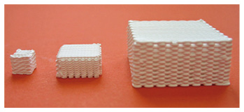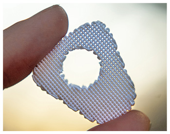 Doch bleibt die Entwicklung nicht stehen. Das Unternehmen sucht immer neue Wege, die vielfältigen Anforderungen aus der Klinik zu erfüllen. Die Eigenschaften der Knochenpaste (Paste-CPC) erlauben die Verarbeitung mit Hilfe eines 3D-Druckers zu filigranen Knochengerüsten, den sogenannten Scaffolds. Die Nutzung dieses innovativen Herstellverfahrens ermöglicht nicht nur eine hohe Variabilität von Größe, Form und Porosität, sondern auch die Anpassung des gewünschten Implantats an den individuellen Defekt. Außerdem werden durch die weitmaschigen, ineinander verflochtenen Poren dieser 3D-Formkörper, was erst durch den modernen 3D-Druck ermöglicht wird, die Bildung und das Einwachsen des neuen Knochens in besonderem Maße begünstigt. Die Scaffolds bilden sozusagen die Autobahnen für den neuen Knochen, statt der Gässchen, Umleitungen und Sackgassen bei den bisherigen Produkten. Die Knochen heilen dadurch schneller und die Patienten können besser genesen.