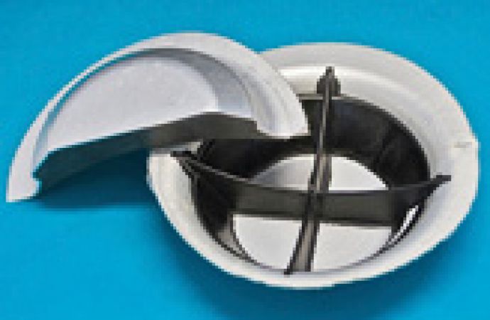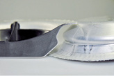 Konventionell werden die Einzelkomponenten der Metall-Kunststoff-Hybridbauteile in voneinander getrennten Produktionsschritten hergestellt und nachträglich verbunden. Eine weitere Möglichkeit ist das An- oder Umspritzen des bereits hergestellten Metallelements. In beiden Fällen sind mehrere Prozessschritte auf unterschiedlichen Produktionsanlagen erforderlich. Am IWU wurde gemeinsam mit der Technischen Universität Chemnitz eine Verfahrenskombination entwickelt, mit der Metall-Kunststoff-Verbundbauteile in einem Herstellungsschritt realisiert werden können. Das Versuchsbauteil aus Metall wird in einem ersten Teilschritt tiefgezogen. Im Anschluss wird der Kunststoff eingespritzt. Der hohe Einspritzdruck konnte beim Versuchsbauteil zum Ausformen von Nebenformelementen genutzt werden.
