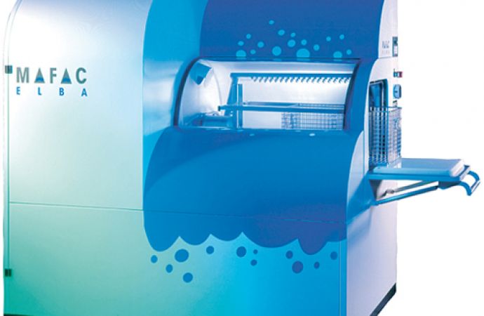 Text zum Titelbild: Mafac Elba, flexible Spritzreinigungsmaschine mit Zwei-Bad-System