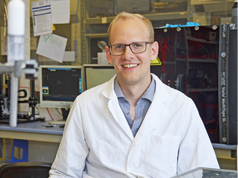 Materialwissenschaftler Leonard Siebert hat eine Methode entwickelt, um nicht haftende Kunststoffe auf mechanische Art dauerhaft miteinander zu verbinden (© Julia Siekmann, CAU)