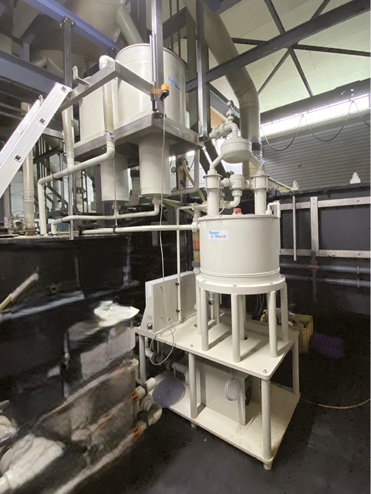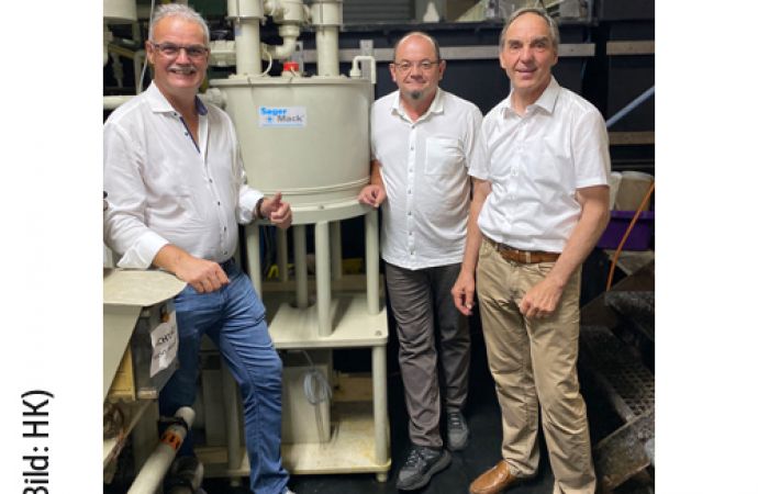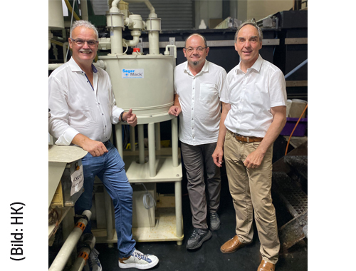 Das war die Ausgangssituation, als sich Thomas Haberfellner von Schlötter und Peter Mack, Sager + Mack, Ende 2022 zusammensetzten und darüber nachdachten, wie Verbesserungen möglich sein könnten. Dabei kam die Sprache auf das Verfahren der Zyklonabscheidung. Einsatz findet diese Technik in größerem Umfang zur Partikelabtrennung aus Luft oder Gasen [1]. Ob das System für die Abtrennung von feinsten Partikeln aus wässrigen Medien auch funktioniert, war zunächst unklar. Doch der Ehrgeiz war bei Peter Mack geweckt und bei Thomas Haberfellner hatte er den richtigen Partner an seiner Seite. Anfang 2024 war dann eine Filtrationsanlage als Prototyp entstanden, die bei der Dr.-Ing. Max Schlötter in Geislingen eingesetzt und getestet wurde.