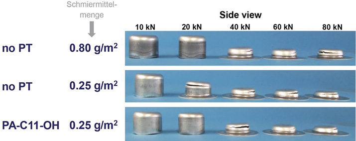 Für eine vergleichbare Umformbarkeit kann die Schmiermittelmenge durch optimalen Aufbau der Beschichtungen deutlich gesenkt werden (Bild: Dr. Bleich)