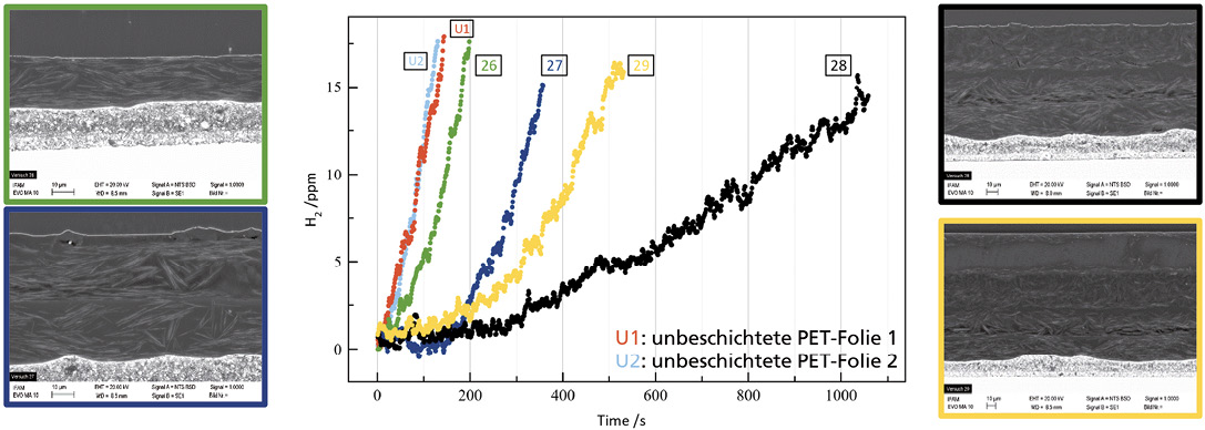 Eine weitere Herausforderung ist die Aufbringung der Beschichtung bei bereits bestehenden Infrastrukturelementen aus Stahl und Polymeren. Erwartungsgemäß ist die Aufbringung vor allem bei hochfesten Stählen interessant. Für die Luftfahrt sollte der Wasserstoff in kryogener Form eingesetzt werden, so dass Barriereschichten auch auf isolierenden Werkstoffen aufgebracht oder mit zusätzlicher Wärmeisolierung ausgestattet werden müssen.