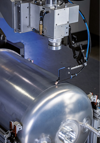 Für Anwendungen in der Luft- und Raumfahrt hat das Fraunhofer IWS eine Laserschweißtechnologie entwickelt, um geschlossene Tankstrukturen aus einer hochfesten Aluminiumlegierung der 2000er-Reihe herzustellen. Da diese Legierungen beim Verschweißen zur Heißrissbildung neigen, kommt bislang üblicherweise Zusatzdraht zur Beeinflussung der Legierungsbildung im Schweißgut zum Einsatz. Der neue Laserschweißprozess des Instituts verzichtet dagegen vollständig auf Zusatzwerkstoffe und ermöglicht ein prozessstabiles, wärmearmes Schweißen auch an dreidimensional geformten Konturen. Der laserbasierte Prozess eignet sich laut Dr. Jahn hervorragend für den Abschluss rotationssymmetrischer Behälter und wird auch für das Einschweißen von Rohren untersucht. Er liefert dichte, mechanisch belastbare Nähte ohne nennenswerten Verzug und bei hoher Nahtfestigkeit.