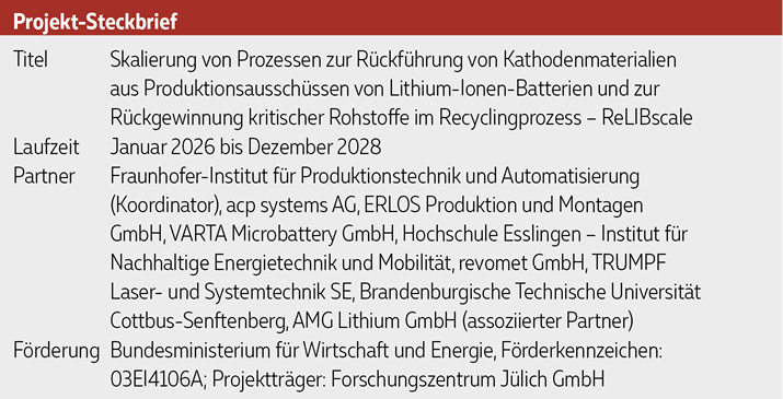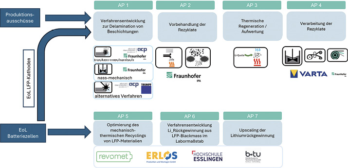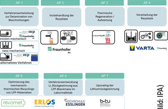Zweitens wird ein Verfahren entwickelt, um aus sogenannter Schwarzmasse von LFP-Batterien gezielt Lithium in hoher Reinheit zurückzugewinnen. Schwarzmasse ist das gemischte Pulver, das beim Zerkleinern von Zellen entsteht. Dieses Lithium soll anschließend in der Industrie weiterverwendet werden können.