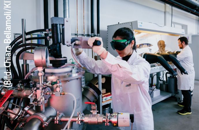 Text zum Titelbild: Legierungsherstellung mittels Lichtbogenschmelzen im Materialsyntheselabor des Instituts für Angewandte Materialien – Werkstoffkunde (Bild: Chiara Bellamoli/KIT)