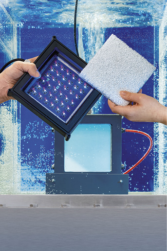 Keramisches Stacksystem mit multifunktionaler Schaumkeramik und LED-Array zur effizienten photokatalytischen Reinigung industrieller Prozess- und Abwässer (© Fraunhofer IKTS)