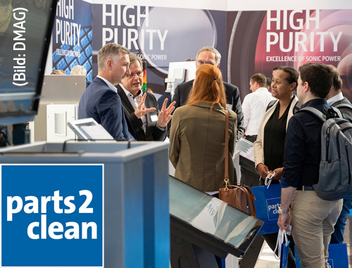 Für diese Anforderungen präsentieren die Aussteller der diesjährigen parts2clean nach Aussage von optimal angepasste und zukunftsorientierte Lösungen. Und das unabhängig davon, aus welchen Werkstoffen die zu reinigenden Werkstücke gefertigt werden und ob es sich um eine Entgratung, Vor-, Zwischen- oder Endreinigung beziehungsweise eine High Purity-Anwendung handelt, so Randjbar-Moshtaghin weiter. Das Portfolio beinhaltet Anlagen, Systeme, Medien und Verfahrenstechniken für fluidbasierte Prozesse und die energieeffiziente Trocknung ebenso wie Lösungen für die trockene Reinigung. Reinigungsbehältnisse und Werkstückträger, Technologien für die Wasseraufbereitung und Mediumpflege sowie für die Steuerung, Überwachung und Kontrolle von Reinigungs-, Spül- und Trocknungsprozessen sowie der erzielten Sauberkeit sind weitere Bereiche.