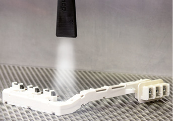 Sensortechnik, Halbleiterindustrie, Mikro-Elektronik, Batterie- und Brennstoffzellenfertigung, Medizin- und Pharmaindustrie – nur einige der Branchen, in denen extrem strenge Anforderungen an die partikuläre und filmische Sauberkeit gestellt werden. Die trockene quattroClean-Schneestrahltechnologie, die recyceltes, aufbereitetes Kohlenstoffdioxid (CO2) als Reinigungsmedium nutzt, hat sich bei solchen Aufgabenstellungen als effiziente, prozesssichere und ressourcenschonende Lösung bewährt. Im Gegensatz zu nasschemischen Verfahren kann die Reinigung fertigungsintegriert sowie ohne aufwendige und energieintensive Trocknungsprozesse erfolgen. Die Materialverträglichkeit des CO2-Schnees wurde bei diversen, produkttypischen Oberflächen von Medizin- und Pharmaprodukten in einem Forschungs-Verbundprojekt nachgewiesen und eine Basisvalidierung für Life-Science-Anwendungen durchgeführt. Für Reinigungsversuche verfügt acp systems über ein Reinraum-Technikum bis Reinheitsklasse ISO 5.