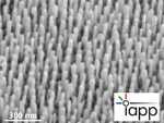 Was auf dem Bild wie ein Fakirteppich aussieht, sind Gold-Nanoantennen von wenigen 100 nm Länge und 30 nm Durchmesser. Diese Winzlinge sind sensitiv auf das elektromagnetische Spektrum im sichtbaren Wellenlängenbereich und können durch Plasmonenresonanzen bestimmte Wellenlängen filtern, konzentrieren und verstärken. Sie bilden die Basis für die moderne optische Sensorik wie sie im Projekt nanoSPECS angegangen wird.
