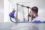 The thing about our bonded coating is its composition and structure, explains Carsten Becker-Willinger, Head of the Nanomers Program Division. We have incorporated platelet-like solid lubricants and platelet-like particles in a binder. When this mixture is applied to a surface, it produces a well-ordered structure in which these various particles are arranged in a roof tile pattern. This forms a so-called transfer film between the bonded coating and the object through which surfaces can slide with the minimum of friction. The particular mixture ratio means that our composite has a very low coefficient of friction. If we only used a solid lubricant, the coefficient of friction would be considerably higher.