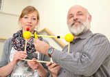 Chemikerin Britta Hesseler und Chemiker Ulrich Lüning mit einem Modell der künstlichen Protonenpumpe / Bildquelle: Schimmelpfennig/CAU