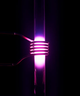 Zukünftig möglich: Induktiv gekoppeltes Plasma basierend auf Galliumnitridelektronik in einer gasdurchströmten Quarzglasröhre zur Werkstoffbearbeitung / Bildquelle: TRUMPF Group