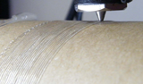 Extruding of the thermoplastic Bio-PU out of a 0.5 mm injector / Picture: Merseburg University of Applied Sciences / D. Glatz