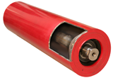 Aufbau einer Tragrolle: Der Stahlzylinder dreht sich auf Kugellagern um eine Achse / Bildquelle: IPH