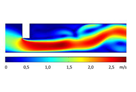 Simulation der Gasgeschwindigkeit in einer neuen Precursorzuleitung, erstellt mit COMSOL Multiphysics® V5.1. / Bildquelle: Kunststoff-Institut Lüdenscheid