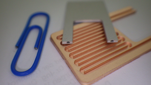 Gedruckter Wärmeübertrager mittels Sieb- oder Schablonendruck als offene (Kupfer) und geschlossene (Stahl) Variante. Beide Verfahren ermöglichen komplexe Innenkanäle ohne Stützstruktur / Bildquelle: Fraunhofer IFAM Dresden