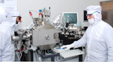 Dr. Rohit Soni (links) und Dr. Adrian Petraru erzeugen extrem dünne ferroelektrische Tunnelbarrieren mit Laserstrahlung (im Bild zu sehen ist eine Pulsed Laser Depositionsanlage) / Bildquelle: Uni Kiel