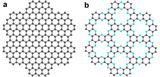 Structural difference between graphene and C2N-h2D crystal: (a) graphene; (b) C2N-h2D crystal / Credit: Ulsan National Institute of Science and Technology for both images