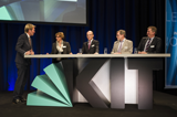 Podiumsdiskussion – Meilensteine der Materialwissenschaft – von der Entwicklung des Stahls an der Wende vom 19. ins 20. Jahrhundert bis zu heutigen LEDs – und aktuelle Forschungsbereiche wie die nachhaltige Energiegewinnung und Energieeinsparung standen bei der Talk-Runde „In die Zukunft investieren – Materialwissenschaft als Basis technischen Fortschritts“ im Mittelpunkt. Über die zahlreichen Facetten der Materialwissenschaft und ihre Bedeutung für die Industrie sprach Moderator Markus Brock mit Vertreterinnen und Vertretern aus Industrie und Wissenschaft: Dr. Friederike Lindner, Vice President Corporate Sector Purchasing and Logistics der Robert Bosch GmbH, Dr. Tim Hosenfeldt, Vice President Competence Center Surface Technology der Schaeffler Technologies AG & Co. KG, Professor Dr. Oliver Kraft, Präsident der Materials Research Society und Mitglied der kollegialen Leitung des Instituts für Angewandte Materialien sowie Professor Dr. Peter Elsner, Leiter des Fraunhofer Instituts für Chemische Technologien ITC.