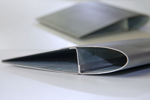 Technologiedemonstrator: Rotorblatt aus 1,0 mm Stahlblech mit integrierter, gekanteter Verstärkung / Bildquelle: Fraunhofer IWU