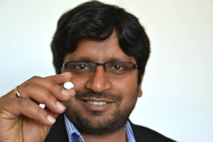 Yogendra Kumar Mishra zeigt dehnbare Keramik aus Zinnoxid / Bildquelle: Claudia Eulitz/Uni Kiel