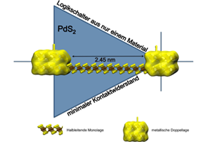 Das verringert die Abwärme und verbessert damit die Energiebilanz erheblich, außerdem wird das Recycling erleichtert. Das Schichtmaterial Palladiumdisulfid ist als Einzellage halbleitend, als Doppellage metallisch. Daher kann es - anders als bei herkömmlichen Transistoren - gleichzeitig zur Herstellung der stromleitenden Kontaktelektrode und auch der halbleitenden Schalter genutzt werden. Im herkömmlichen Transistor, dem grundlegenden Baustein eines Computer-Prozessors, ist das Halbleitermaterial - meist Silizium - mit stromleitenden Metallelektroden versehen. Diese bestehen häufig aus Gold. Bei Stromfluss treten sogenannte Kontaktwiderstände auf. Dadurch entstehen zwangsläufig Leitungsverluste, die ungünstig für die Energieeffizienz sind und zu Abwärme führen. Das Alternativkonzept von Heine und seinem Team nutzt ein und dasselbe Material sowohl für die Kontaktelektroden als auch für den halbleitenden Schalter: Palladiumdisulfid. Da Halbleiter und Elektrode aus der gleichen Kristallstruktur bestehen, wird der Kontaktwiderstand minimiert.