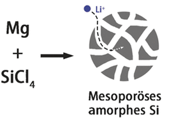 Die derzeit gängigste Anode in Lithiumionenakkumulatoren besteht aus Kohlenstoff in seiner Graphitmodifikation. Allerdings hat ausgerechnet Graphit eine relativ niedrige Ladungskapazität. Weitere bekannte Probleme von Lithiumionenbatterien sind eine geringe Zyklenanzahl, steigender interner Widerstand während der Ladezyklen, Alterung sowie Sicherheitsaspekte. Die nächstliegende Alternative zu Kohlenstoff wäre Silicium, das eine fast zehnfach höhere theoretische Ladungskapazität als Graphit bietet. Der Lade- und Entladevorgang wird jedoch zum Problem: Ausdehnen und Schrumpfen bei den Zyklen führt zu Pulverisierung und Kapazitätseinbruch. Jian Yang und seine Kollegen an der Shangdong-Universität in China haben jetzt eine amorphe poröse Siliziummodifikation hergestellt, die diese Nachteile kompensiert.