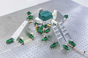 Darüber hinaus verwenden die Forscher für die Nachbildung von hochdynamischen Signalen mit kleiner Amplitude bis zu neun Piezoaktoren, wobei sie darauf achten, dass der Versuchsstand selbst im relevanten Frequenzbereich keine eigene Dynamik, beispielsweise in Form von Resonanzen, aufweist. Dies würde zu einer deutlich verschlechterten Signalnachbildung führen.