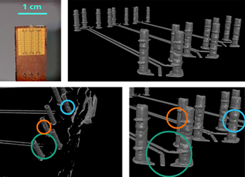 Elektronische Geräte müssen heute immer größere Datenmengen in gleichzeitig immer kleineren und kompakteren elektrischen Strukturen übertragen. Deshalb wird mit aufwendigen Messverfahren das Übertragungsverhalten der Schaltungen und Baugruppen gemessen. Mit einem neuartigen Verfahren zur berührungslosen und breitbandigen Bestimmung von elektrischen Parametern auf Basis der röntgenbasierten Computertomographie (CT) ist es Wissenschaftlern des Fraunhofer IPA und des IPVS der Universität Stuttgart gelungen, das Verhalten mit den tatsächlichen Bauteilstrukturen zu simulieren und die Qualitätsanalyse deutlich zu verbessern.