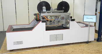 Das Fraunhofer IPT und seine Partner entwickelten damit eine sichere und robuste Anlagentechnologie, die Infrarotstrahler als Wärmequelle zum Verschweißen der einzelnen Lagen nutzt. Dieses eigenständige System kommt ohne Zusatzausrüstung wie Roboter aus und bietet durch seine variable, flächige Konsolidierstrecke eine große Vielfalt an Einsatzfeldern. So lassen sich sowohl Kohlenstoff- als auch Glasfasertapes mit verschiedenen Matrixmaterialien kombinieren.