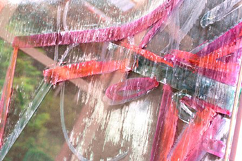 Kristalline Ablagerungen haben sich als weißer Schleier auf die bemalten Glasscheiben gelegt / Bildquelle: K. Selsam-Geißler, Fraunhofer ISC